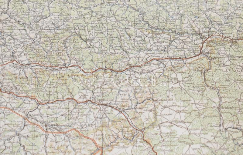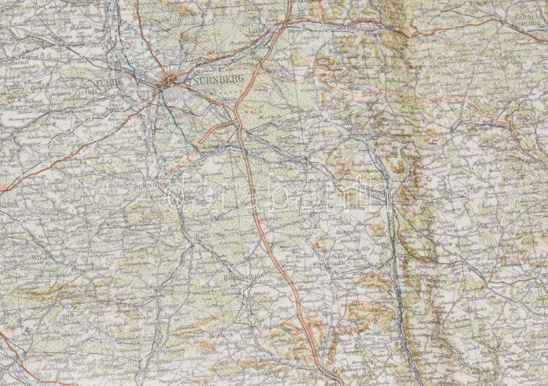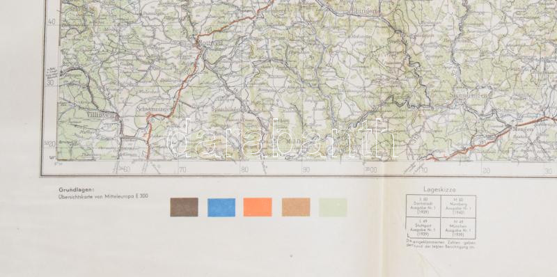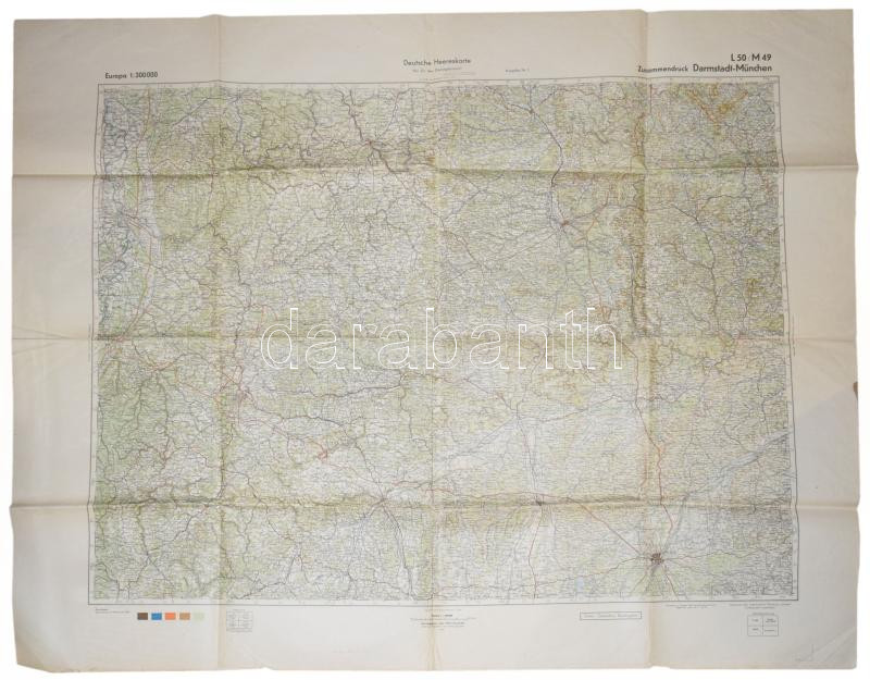 1945 Darmstadt - München, Deutsche Heereskarte L50/M49, 1:300.000, OKH, hajtott, 93x119 cm