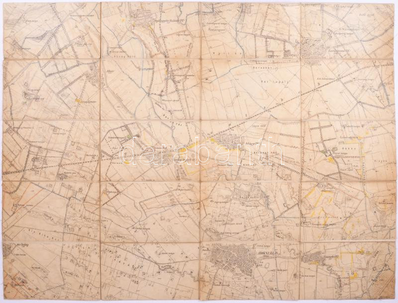 ca 1900 Gyöngyös és környéke katonai térkép, vászonra kasírozva 76x58 cm