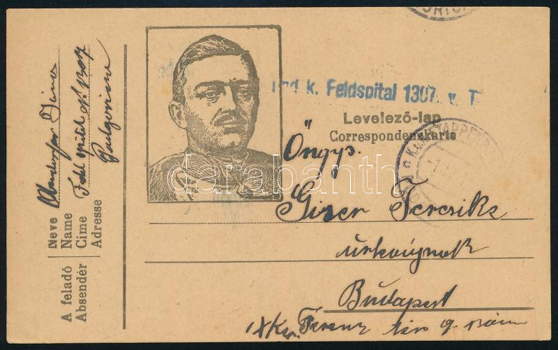 1918 Podgorica, tábori posta levelezőlap "[K.] und k. Feldspital 1307" (tábori kórház) bélyegzéssel