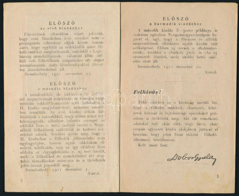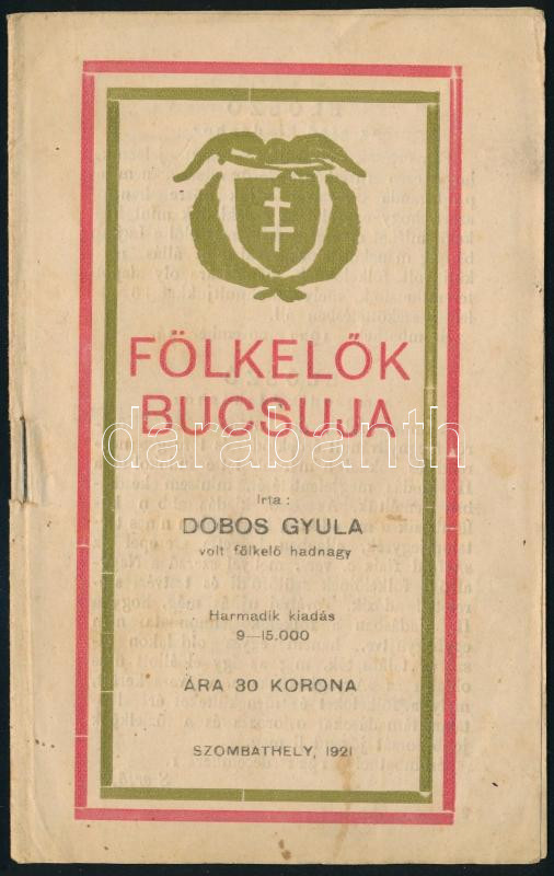 1921 Fölkelők bucsuja. írta Dobos Gyula volt fölkelő hadnagy. 19 p.