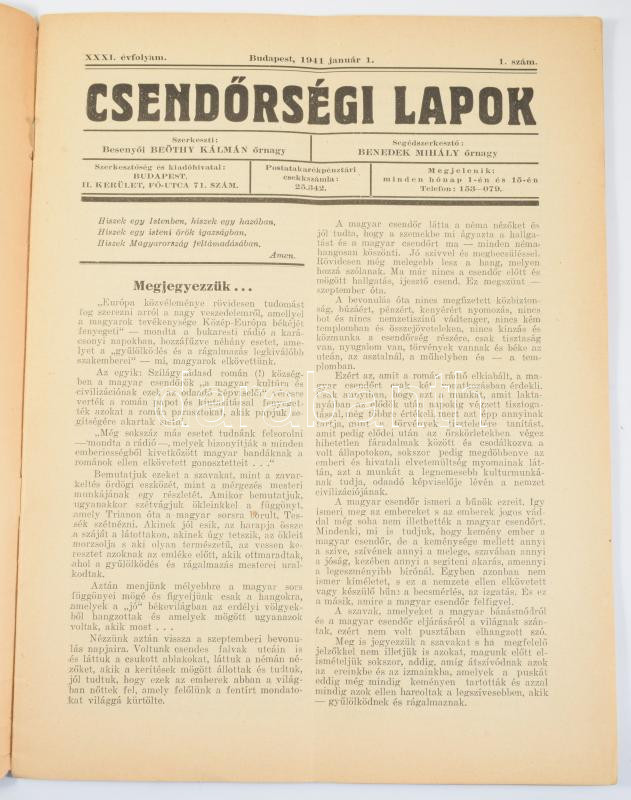 1940 Csendőrségi lapok szerk: Besenyői Beöthy Kálmán, január 1-i száma, Garay borítójával,