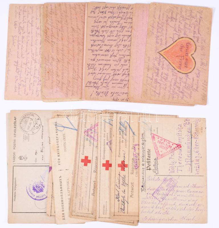 22 db vegyes tábori posta levelezőlap, közte rajzos, illetve hadifogoly levelezőlap is