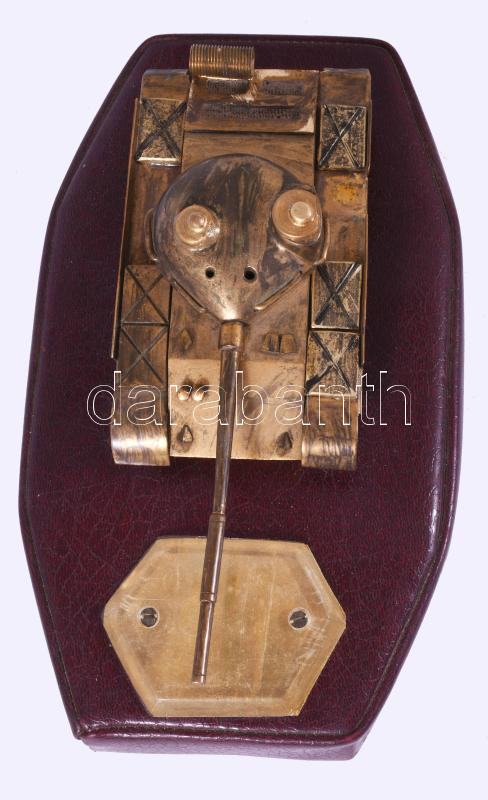 Bronz tank makett, bevont fa talapzaton, makett 20x8 cm
