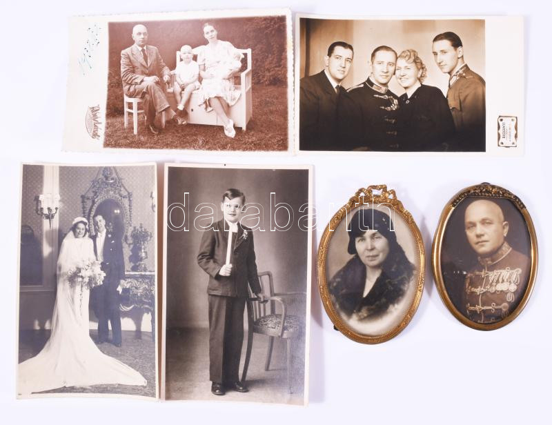 Hernády Nándor (1879-1939) alezredest és családtagjait ábrázoló fényképek, kettő dekoratív réz keretben.