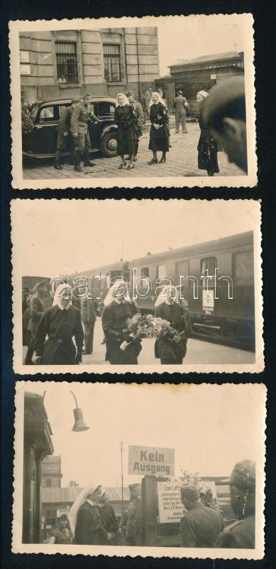 cca 1940 Vöröskeresztes nővéreket ábrázoló felvételek a II. világháború idejéből, az egyik képen kijevi légi kerületi parancsnokság (Luftgau-Kommando Kiew) táblája is látható, 3 db fotó, 6x9 cm