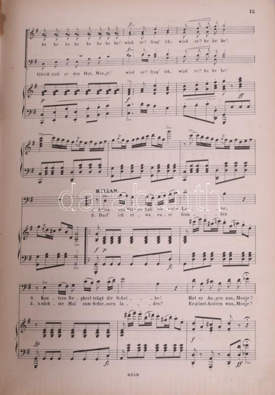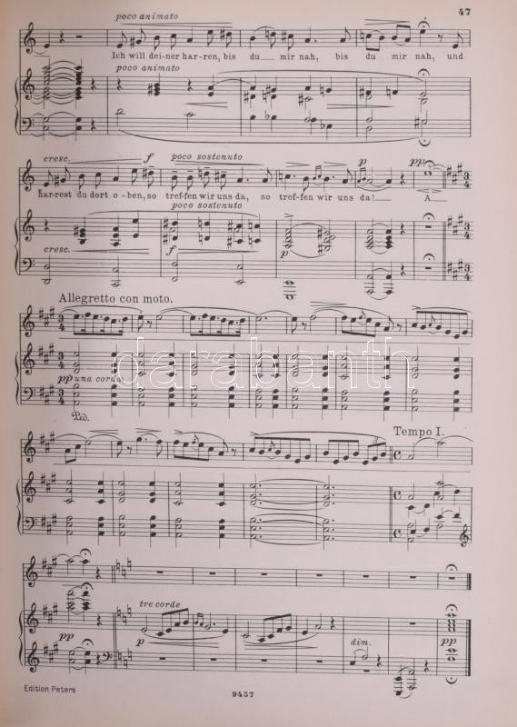 3 db régi, német nyelvű kotta: Felix Mendelssohn Bartholdy: Sämmtliche Lieder und Gesänge für eine Singstimme mit Pianofortebegleitung.; Edvard Grieg: 60 ausgewählte Lieder für eine Singstimme und Klavier.; [Carl Maria von] Weber: Der Freischütz. Oper in 3 Akten. Változó állapotban.