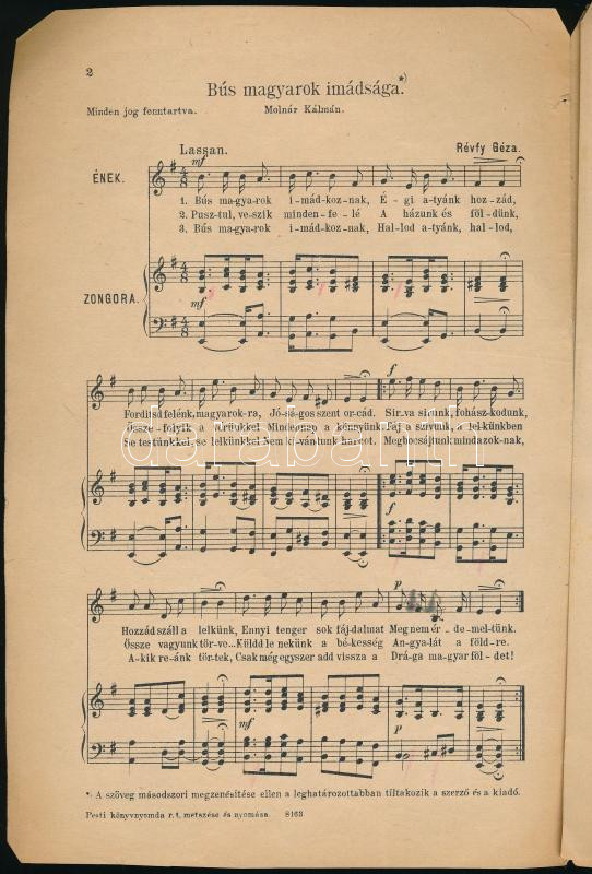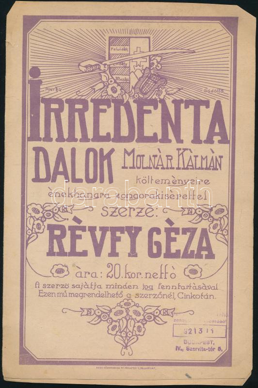 Irredenta dalok Molnár Kálmán költeményeire, szerezte: Révfy Géza, szakadásokkal, sarokhiánnyal