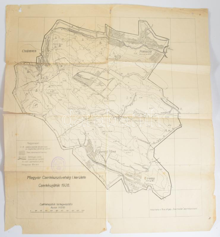 1928 Magyar Cserkészszövetség I. kerülete. Cserkészjáték 1928. Térkép. Készítette a 13. áll gép. Ezermester cserkészcsapat. 47x54 cm Hajtva