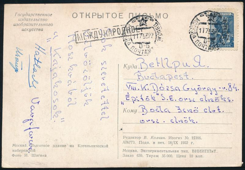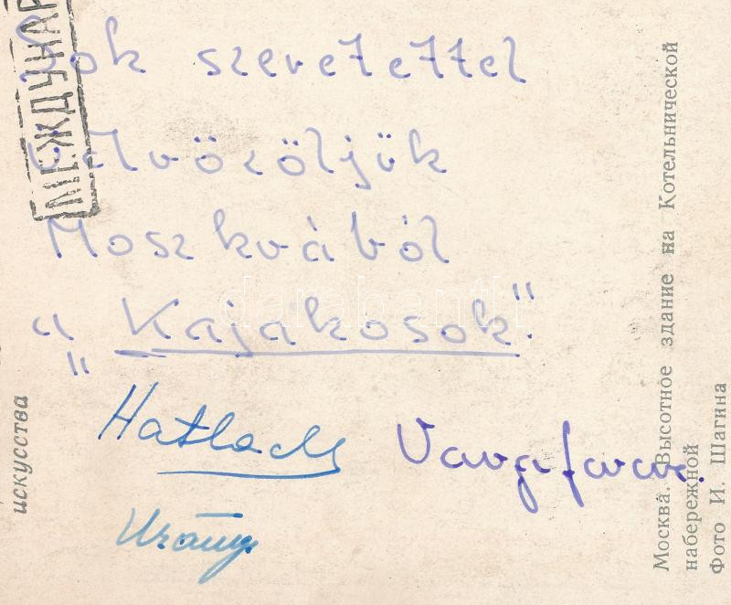 1953 Urányi Imre és Varga Ferenc olimpiai bajnok kajakosok autográf aláírása képeslapon