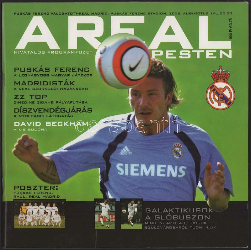 A Puskás Ferenc tiszteletére rendezett emlékmérkőzés a magyar és a nemzetközi futballtörténet kiemelkedő eseménye volt, amely a Real Madrid aranykorának a Galácticos éra meghatározó sztárjait hozta össze. A hivatalos meccsfüzet és a benne található, több világsztár által aláírt poszter különösen becses gyűjtői darab,