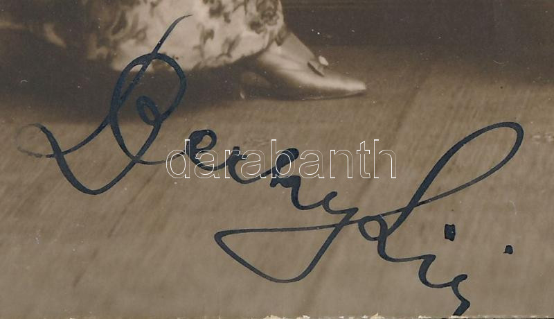 Berky Lili (1886-1958) színésznő autográf aláírása őt ábrázoló fotólapon, 13,5x8,5 cm
