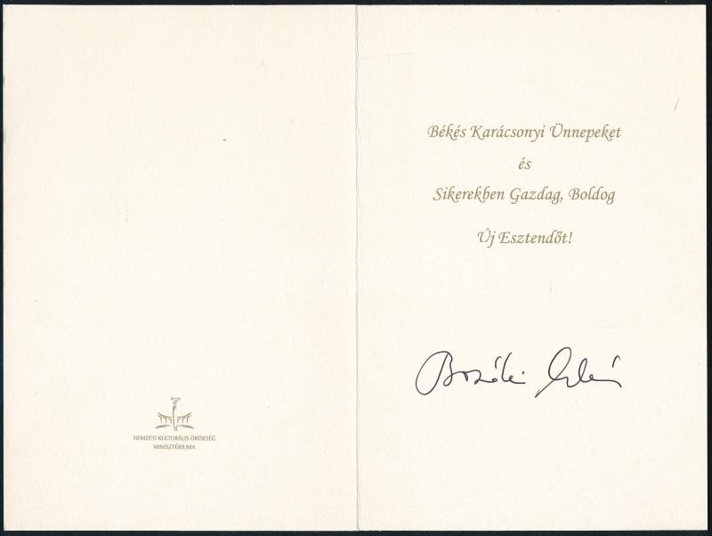 Bozóki Tamás András (1959-) kulturális miniszter aláírása üdvözlőkártyán