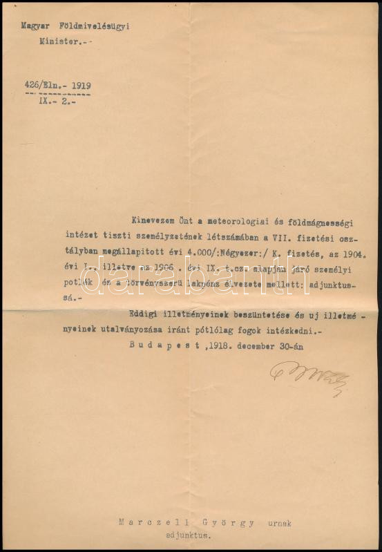 Buza Barna (1873-1944) földművelésügyi miniszter aláírása okmányon