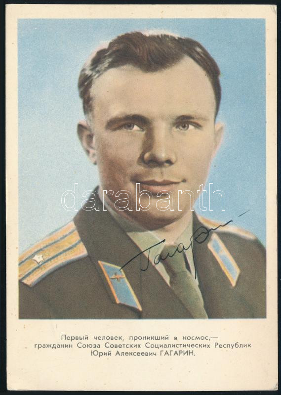 Jurij Alekszejevics Gagarin (1934-1968) szovjet űrhajós autográf aláírása képeslap / Autograph signature of Yuriy Alekseyevich Gagarin (1934-1968) Soviet astronaut on postcard