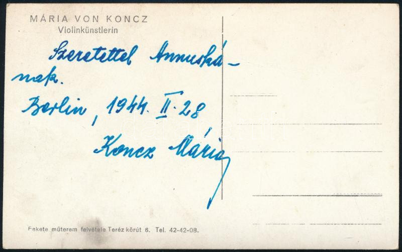 Mária Koncz (Mária von Koncz) színésznő autográf aláírása fotólapon