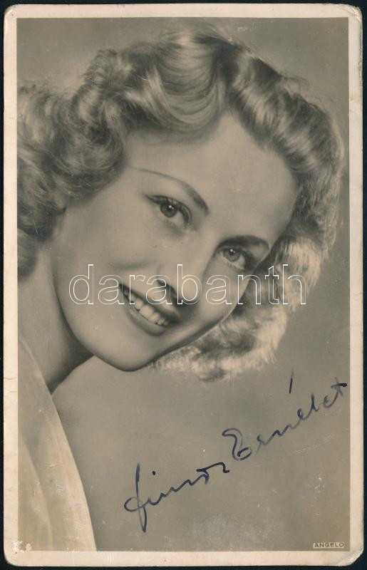 Simor Erzsi (1911-1977) színésznő autográf aláírása őt ábrázoló fotólapon, 13,5x8,5 cm