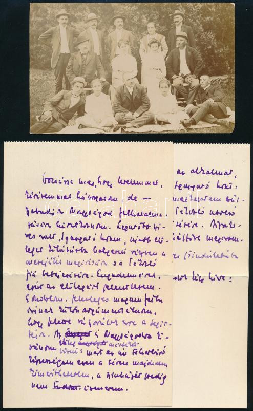 cca 1915 Ujházy György (1895-1971) író, újságíró. forgatókönyvírót és családját ábrázoló fotó valamint későbbi autográf levélpiszkozata Márkus László szini igazgatónak