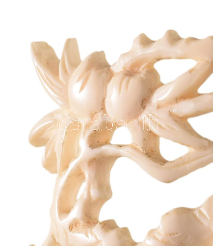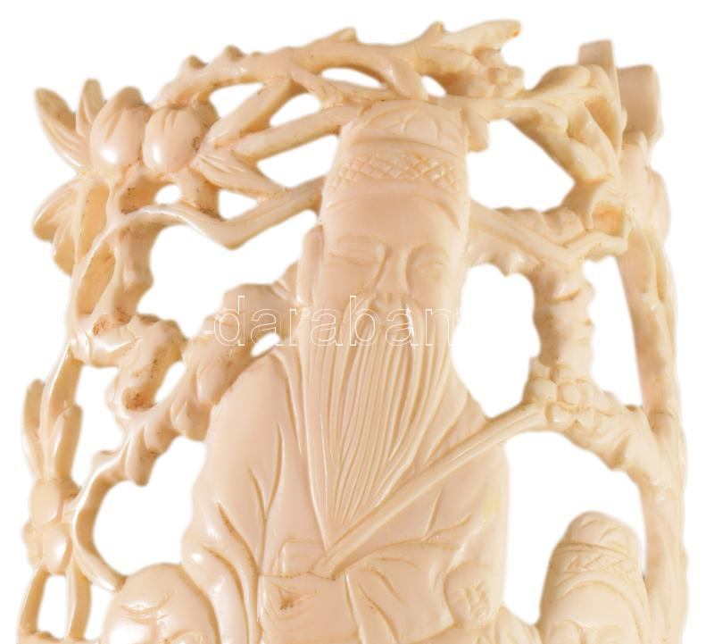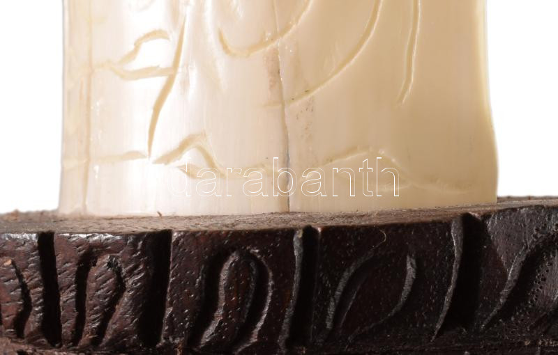 Faragott csont keleti szobor, Keleti Bölcs ábrázolással, fa talapzaton, m: 19 cm