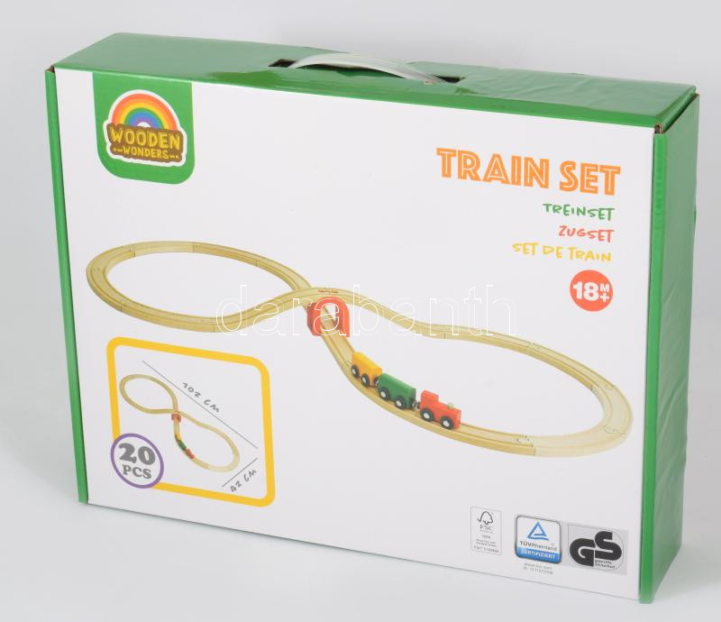 Wooden Train Set fa vonatpálya játék bontatlan dobozában, 29x39 cm