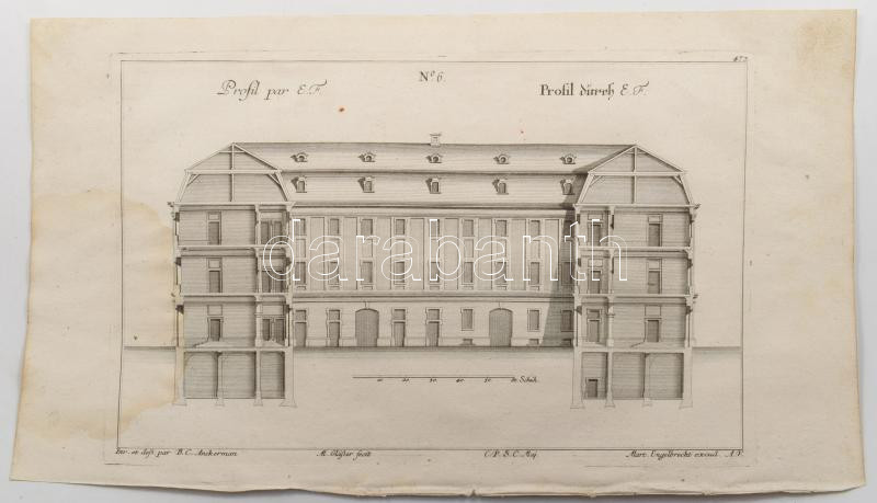 Martin Engelbrecht - Alexander Gläser, Augusta Vindel: kastélyok, épületek Vegyes építészeti metszetek. ca 1730 10 db Rézmetszet. / Architectural plans of different castles and buildings. Engravings 10 pcs 39x24 cm