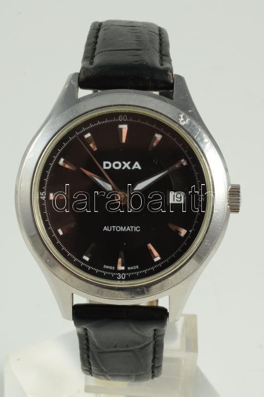 Doxa Automatic automata üveg hátlapos karóra, napkijelzéssel, bőr szíjjal, működik, d: 4cm