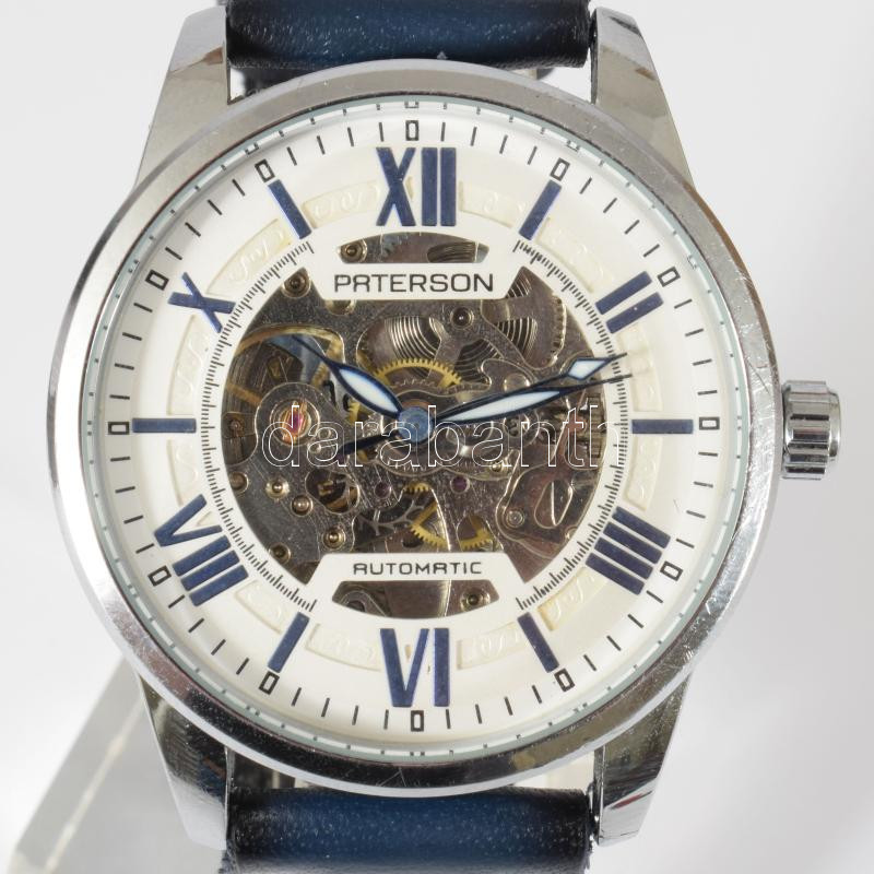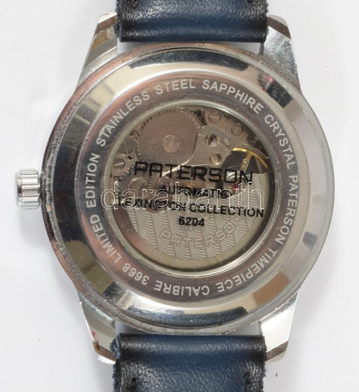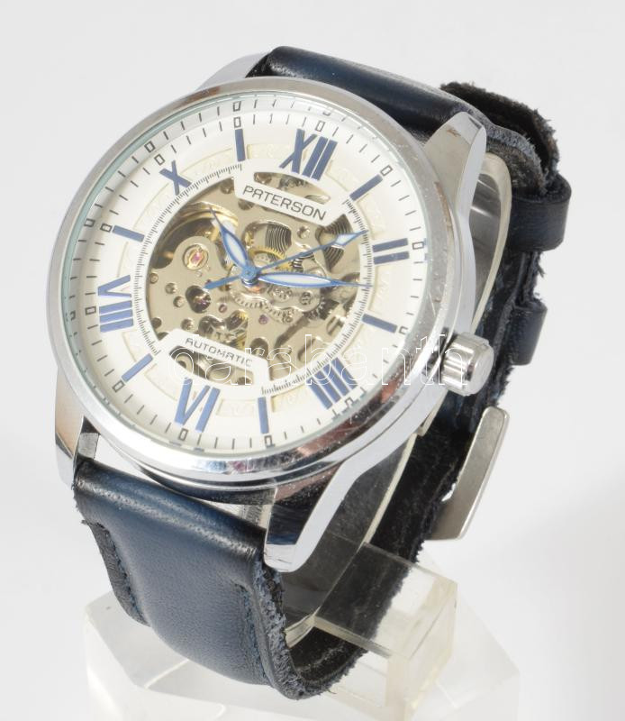 Paterson automata karóra, látható szerkezettel, bőr szíjjal, működő, jó állapotban d: 40 mm