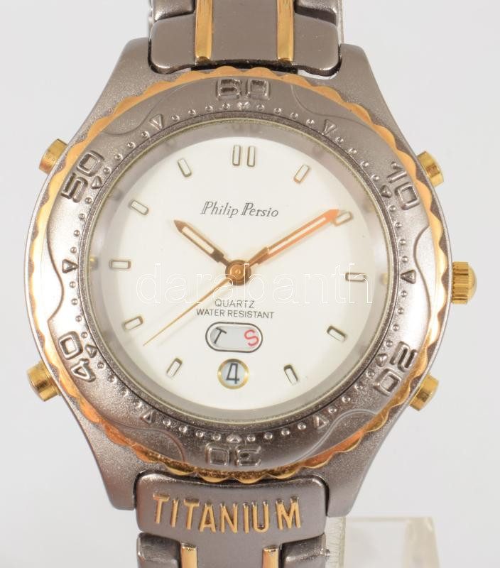 Philip Persio kvarc karóra, elemmel, működik, fém szíjjal. d: 38 mm