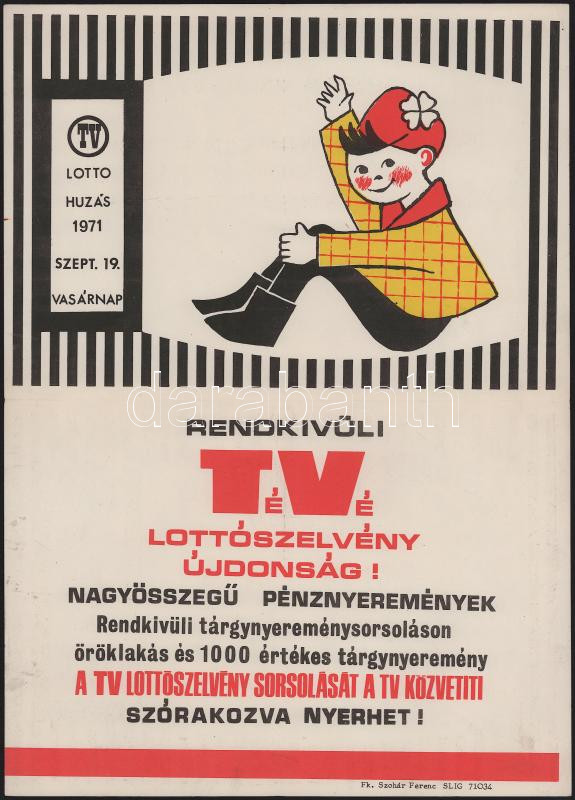 1971 "Rendkívüli TéVé lottószelvény újdonság!...TV Lotto huzás 1971. szept. 19.", reklám plakát, hajtott, 38x27 cm
