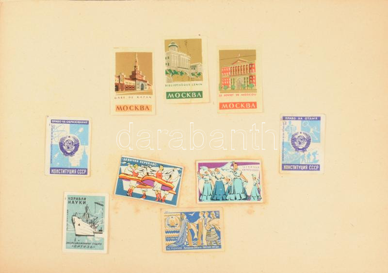 Gyufacímke-gyűjtemény: több száz darab magyar és külföldi gyufacímke, lapokon rendezve