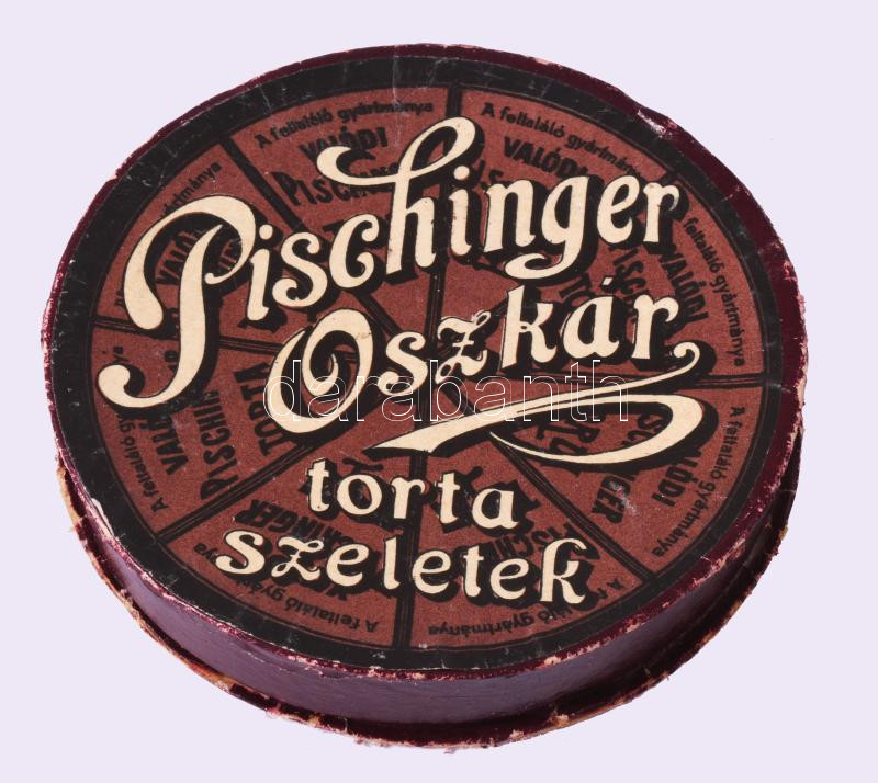 Pischinger Oszkár tortaszeletek papírdoboz, kopásnyomokkal, d: 10 cm