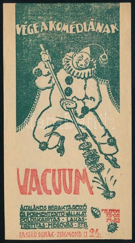 cca 1910 Vége a komédiának, "vaacumos" poloska irtás László István (Zsigmond u. 24.), szép állapotban