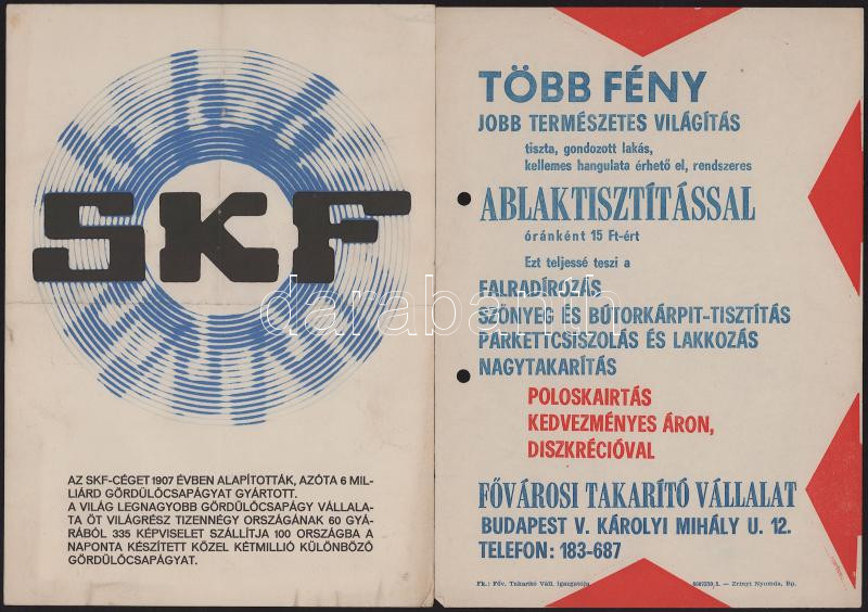 cca 1950-1970 Vegyes műszaki reklám plakát tétel, 4 db: Vörös Csillag Traktorgyár, Könnyűipari Szerelő és Épületkarbantartó Vállalat, SKF, Fővárosi Takarító Vállalat, változó állapotban, kettő szélén két lyukkal, egy másik hajtott, 23x16 cm és 24x17 cm