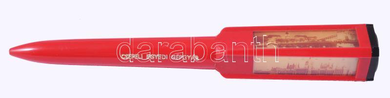 cca 1970 A Csepeli Egyedi Gépgyár reprezentációs ajándék góliát tolla, a fej részen 4 budapesti látkép részlettel, tollbelső hiányzik, egyébként jó állapotban, ritka, h: 21,5 cm