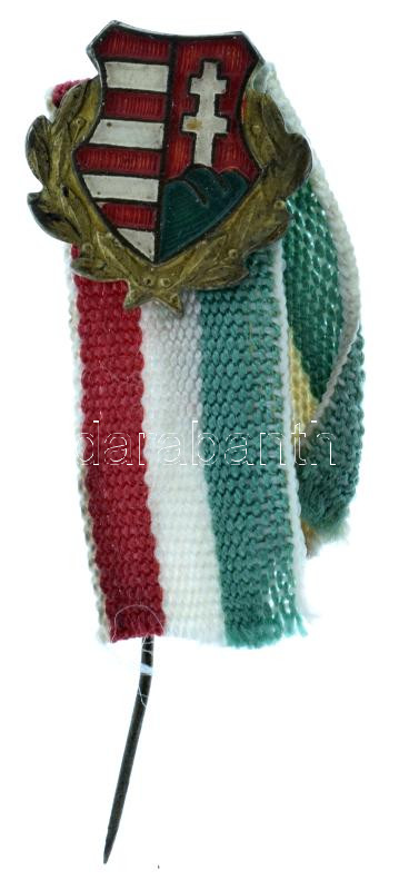 1945-1950 k. "Kossuth-címer" festett bronz jelvény nemzetiszín szalaggal T:XF