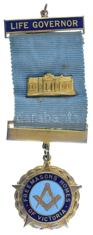 Australia 1962. "Life Governor - Freemasons Homes of Victoria" gilded, enameled bronze Freemasonry badge, with a ribbon, with name engraving on the back C:AU