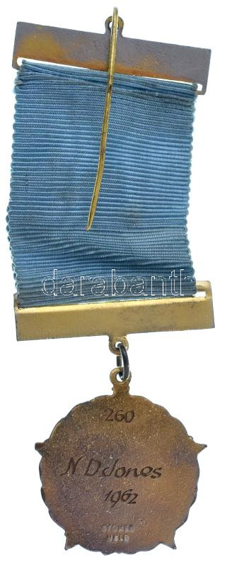 Ausztrália 1962. "Életvezető - Victoria szabadkőműves otthonai" aranyozott, zománcozott bronz szabadkőműves szervezet jelvénye szalaggal, hátoldalán név és szám gravírozással T:AU