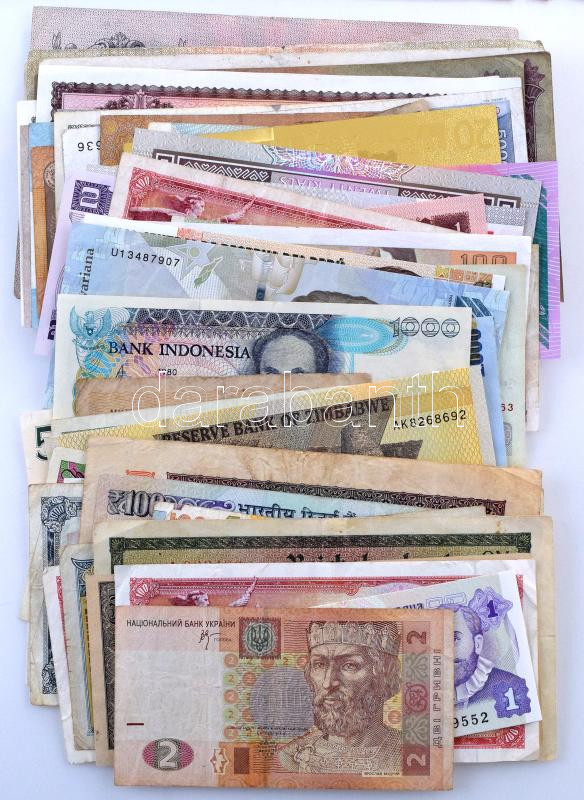 Mixed, 110pcs Hungarian and foreign banknote lot, within: Hungary (30pcs), Portugal, India, Yugoslavia, Egypt, Italy, Austria, Croatia, Venezuela, Yemen, Honduras, France, Russia, etc. C:mixed
