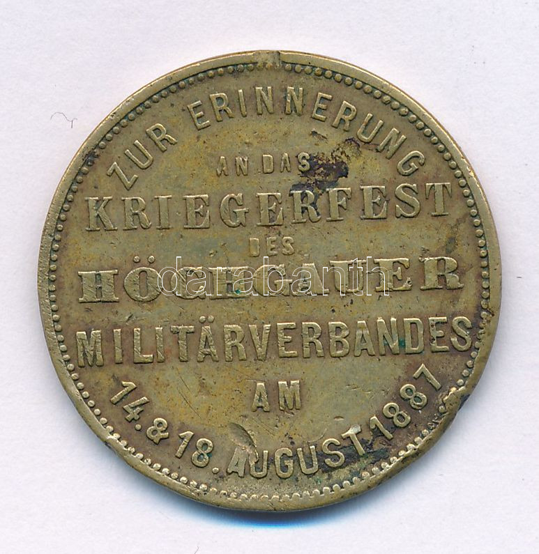 Német Államok / Baden 1887. "Friedrich Grossherzog V. Baden / Zur erinnerung an das Kriegerfest des Höchgauer Militärverbandes am 14. & 18. August 1887." sárgaréz emlékérem (28mm) T:VF ph.