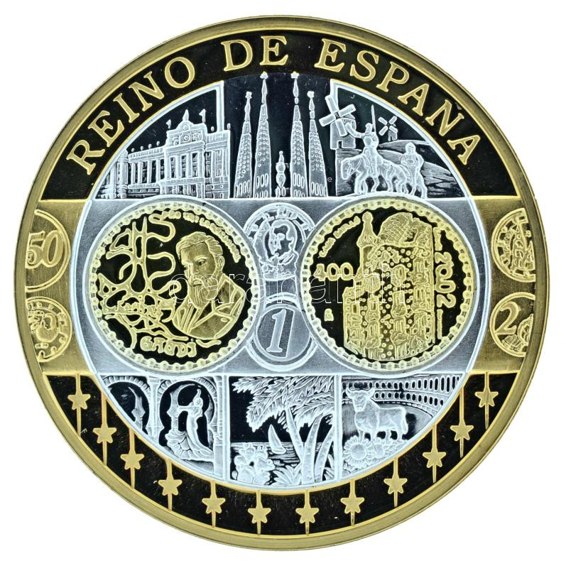 2002-2010 k. "Emlékérem az euróövezet országainak közös valutájáról - Spanyolország" aranyozott, ezüstözött Cu-Ni emlékérem kapszulában, tanúsítvánnyal (35mm) T:PP