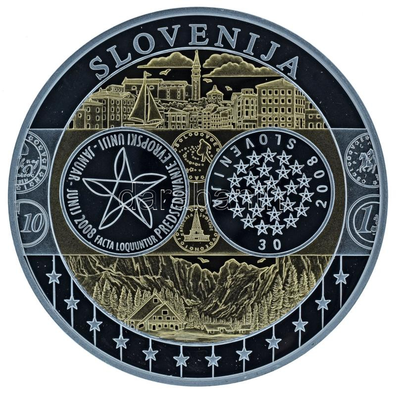2002-2010 k. "Emlékérem az euróövezet országainak közös valutájáról - Szlovénia" aranyozott, ezüstözött Cu-Ni emlékérem kapszulában, tanúsítvánnyal (35mm) T:PP