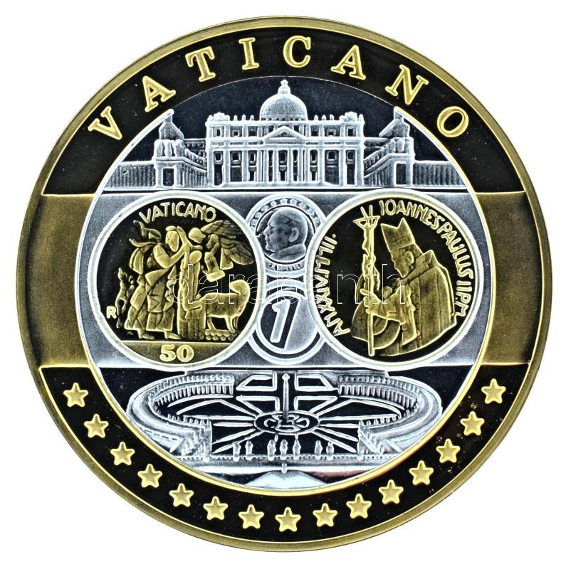 2002-2010 k. "Emlékérem az euróövezet országainak közös valutájáról - Vatikán" aranyozott, ezüstözött Cu-Ni emlékérem kapszulában, tanúsítvánnyal (35mm) T:PP