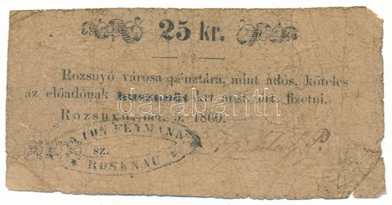 1860. Rozsnyó 25kr "Rozsnyó városa pénztára, mint adós" T:VG