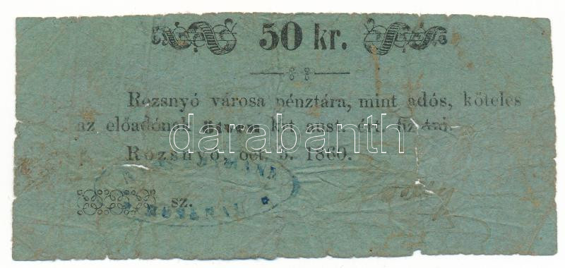 1860. Rozsnyó 50kr "Rozsnyó városa pénztára, mint adós" T:VG,G