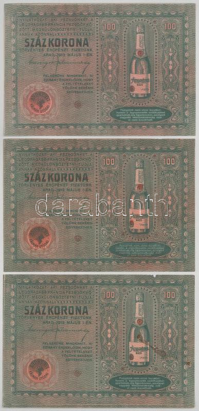 1913. május 1. Arad "Andrényi Kálmán Utódai" pezsgőreklám nyereményjáték felhívással 100K-ról (3x) T:XF,F egyiken beszakadás