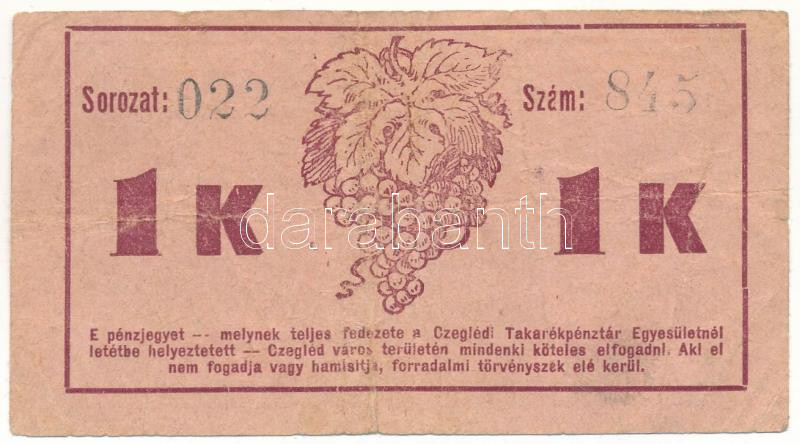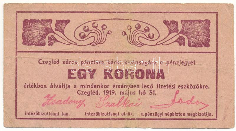 1919. Cegléd 1K "Czegléd Városi Pénztár" T:F