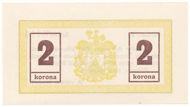 Hungary / Miskolc 14.05.1919. 2 Korona "Miskolcz város" with "Z 05114" serial number C:AU