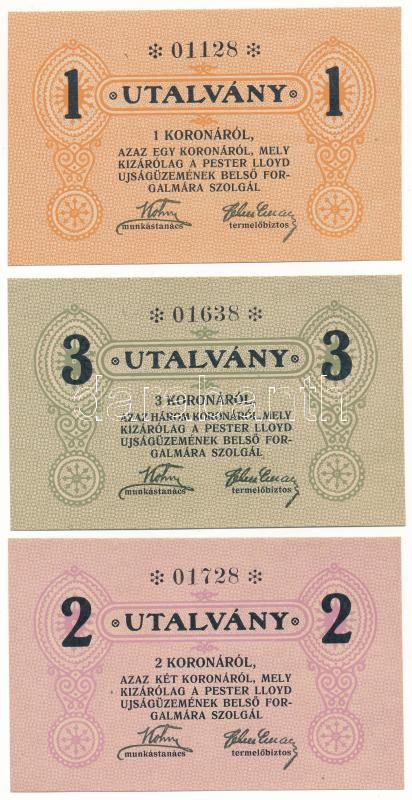 1919(DN) Budapest 1K + 2K + 3K "Pester Lloyd" utalvány T:UNC,AU