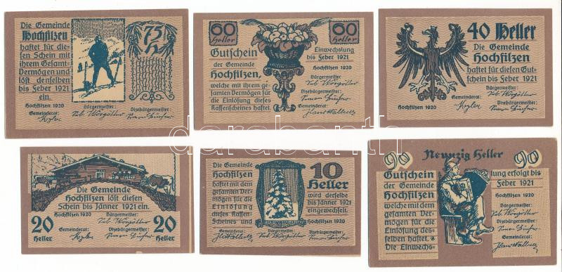 Austria/ Tirol / Hochfilzen 1921. 10 Heller - 90 Heller (6xdiff) C:AU-XF