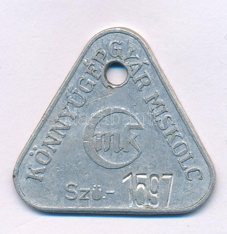 DN "Könnyűgép Gyár Miskolc Szü.-1597" Al bárca T:VF