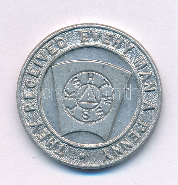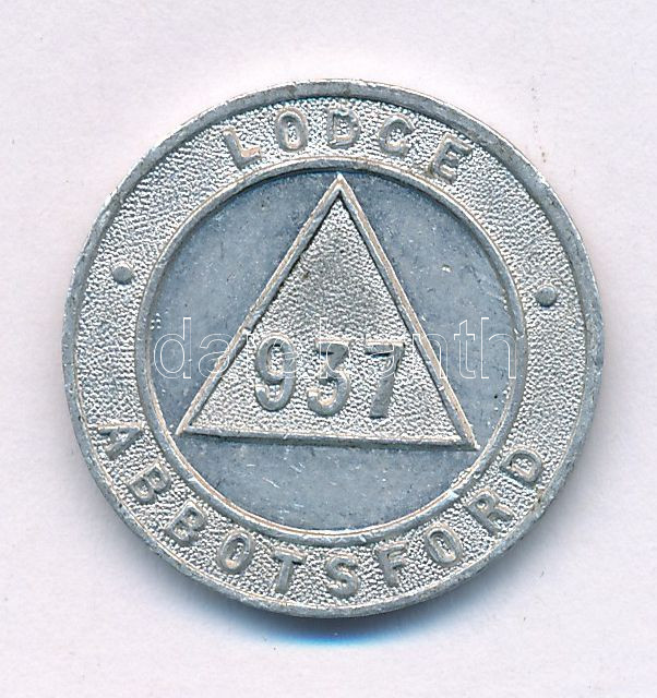 Kanada DN "Lodge Abbotsford - 937 / They received every man a penny (Abbotsfordi páholy - 937 / Minden ember kapott egy penny-t)" kétoldalas Al szabadkőműves zseton (20mm) T:AU
